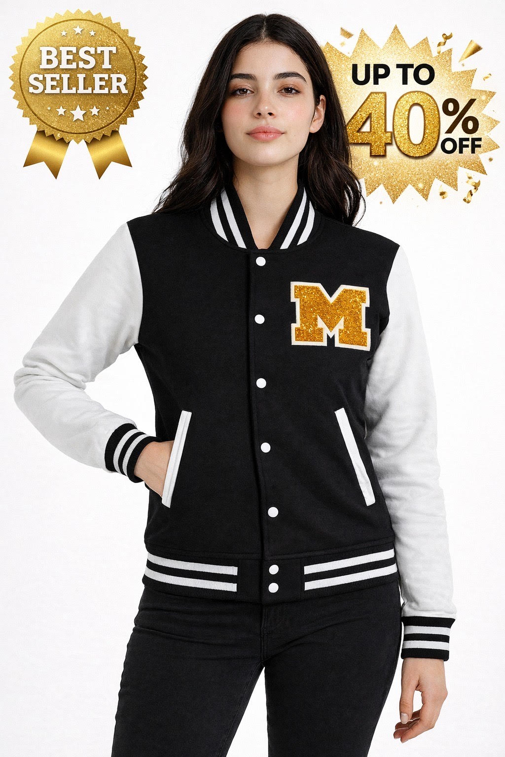 Black M Letter baseball Jacket